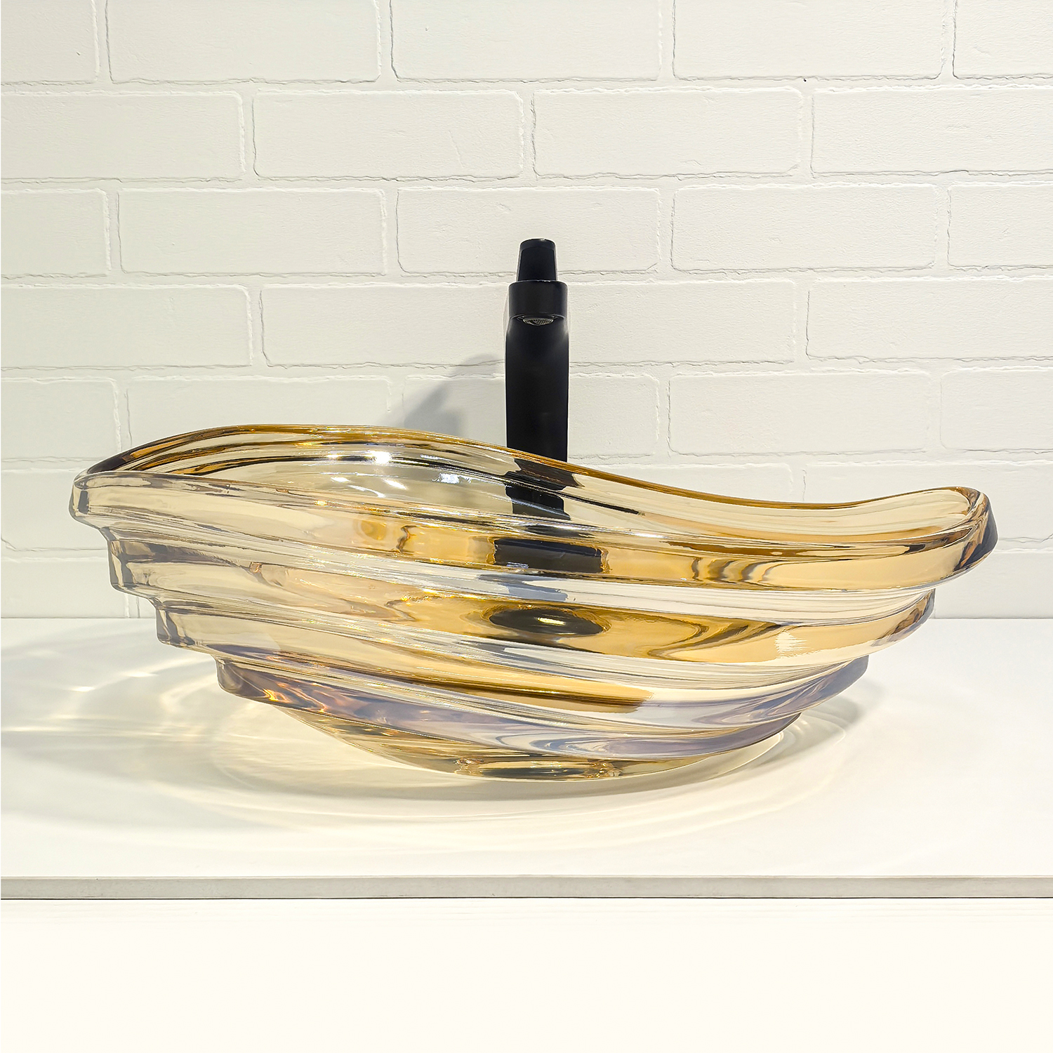 Такая раковина станет изюминкой вашей ванной: она одновременно выглядит как дизайнерный объект и остаётся практичной в ежедневном использовании. Достаточно протереть гладкую поверхность мягкой салфеткой, чтобы вернуть ей кристальный блеск и ощущение новизны.
