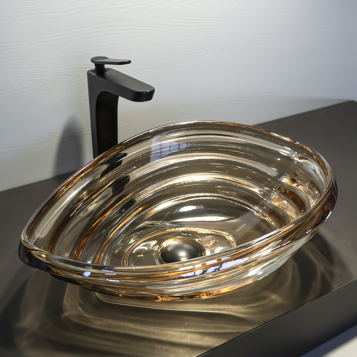 Стеклянная раковина-чаша Comforty CF1G69 в оттенке шампань превращает обычную зону умывальника в эффектный акцент ванной комнаты. Каплевидная форма и плавные волны стекла красиво преломляют свет, создавая игру бликов и ощущение легкости.