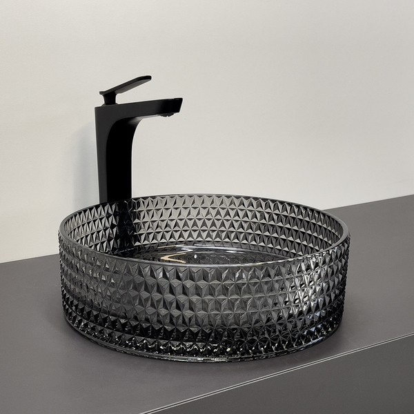 Накладная раковина 36 см Comforty CF21004 стеклянная серый дым