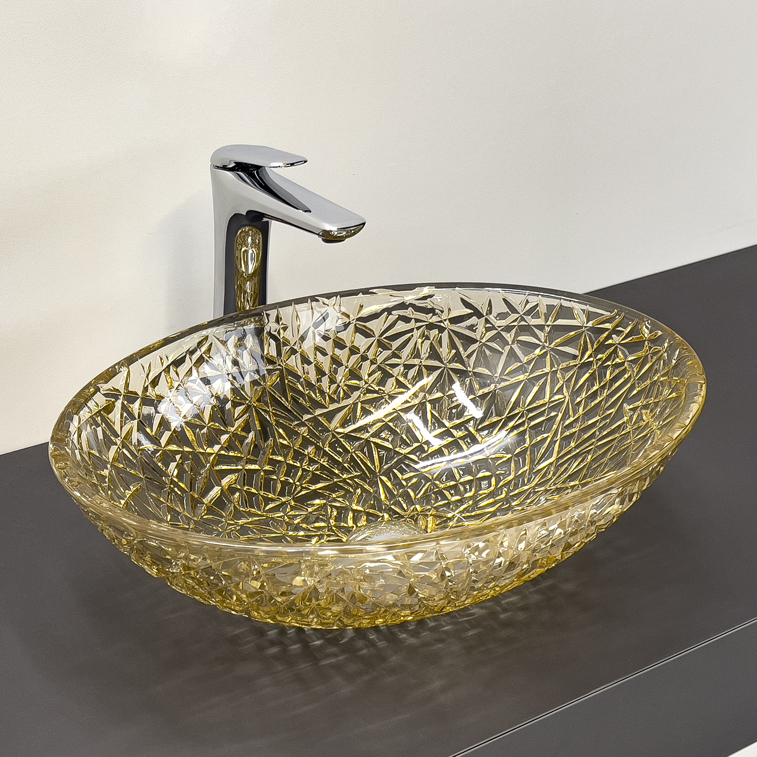 Стеклянная овальная раковина 50 см Comforty CF28004 стекло цвета шампань, для ванной на столешницу