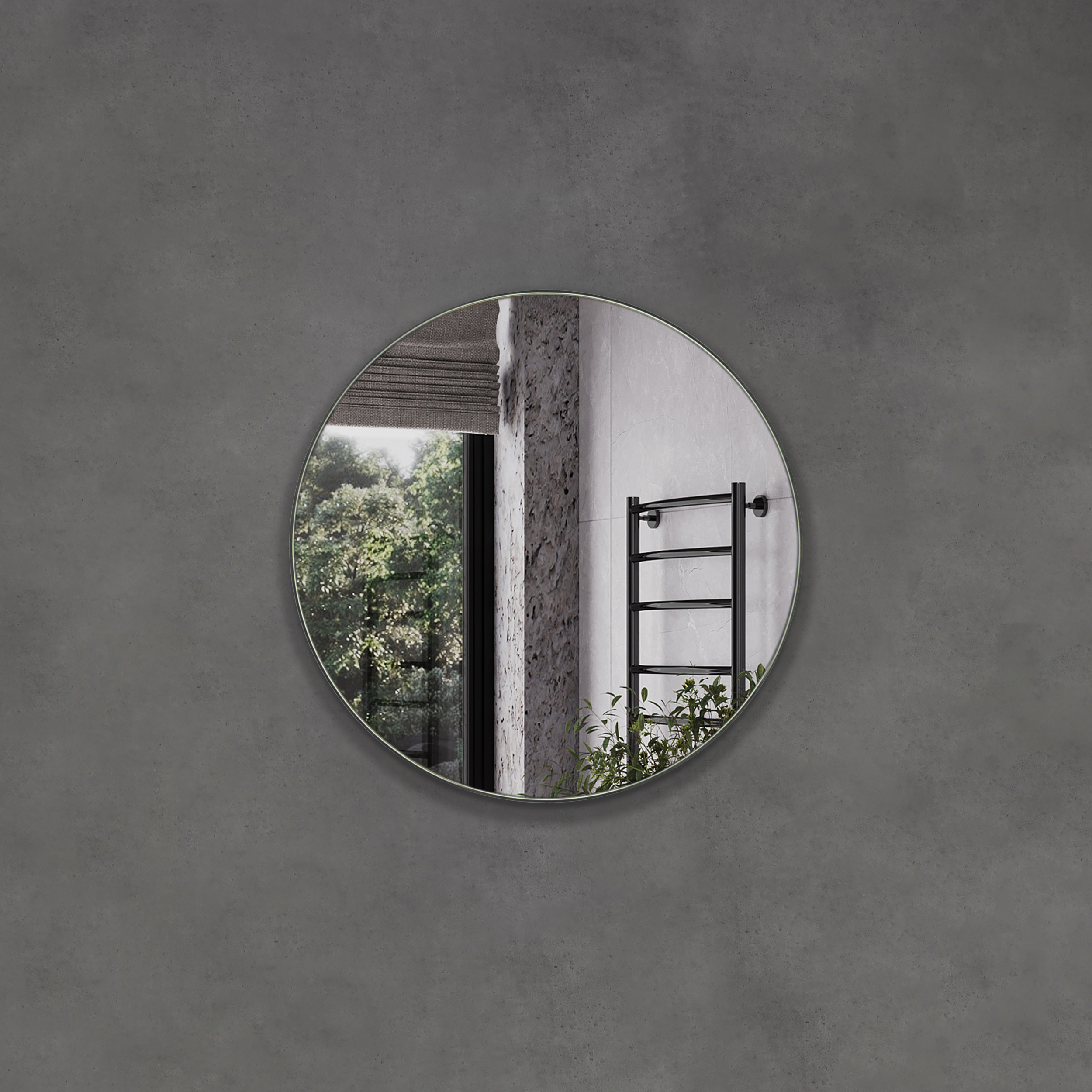 Универсальное настенное круглое зеркало диаметром 400 мм. Изготовлено из зеркального полотна толщиной 4 мм с амальгамой на основе серебра производства ведущего европейского производителя зеркал AGC. Зеркало поставляется в комплекте с настенным крепежом.