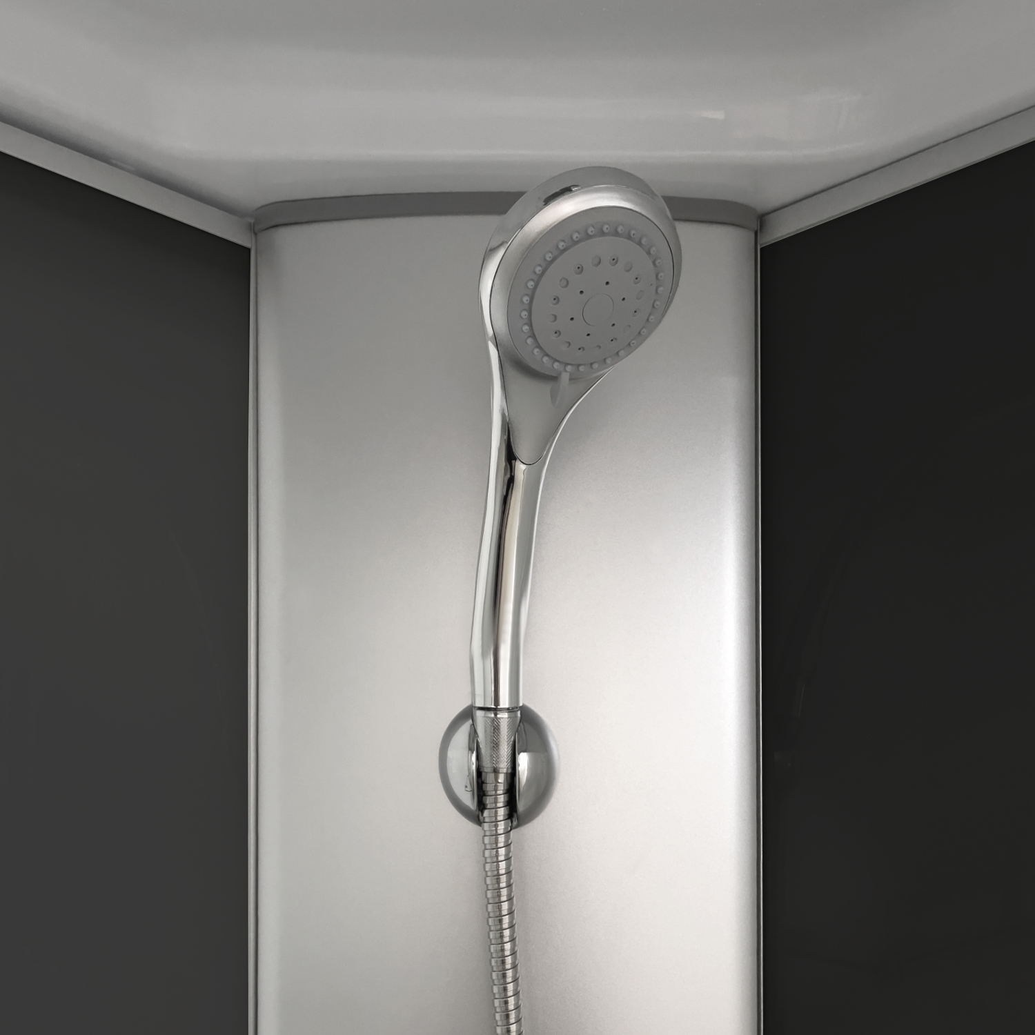 Комплектация: верхний тропический душ, ручной душ (3 режима), душевой шланг, держатель лейки, сифон, стеклянная полочка.