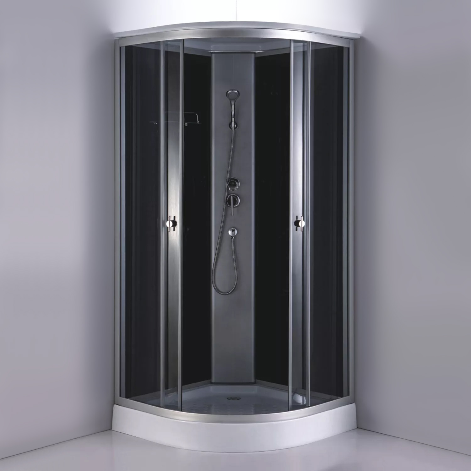 Душевая кабина Comforty СF5881E-A 800*800*2100 серое стекло, задняя черная стеклянная панель, низкий поддон