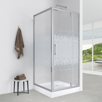 Душевое ограждение Comforty 30MT прозрачное стекло c рисунком мозаика, поддон, профиль хром 900*900*2000 мм