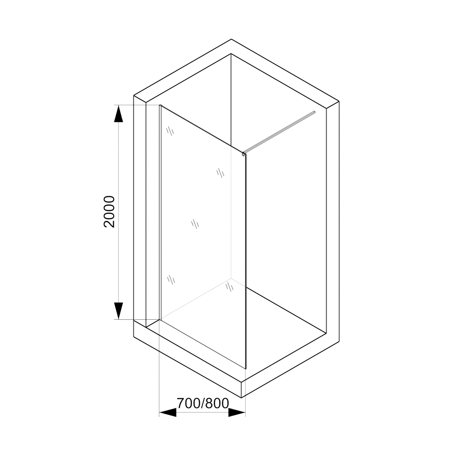 Душевое ограждение WALK-IN серии 916 – это современная стационарная перегородка шириной 800 мм из прочного закалённого стекла толщиной 8 мм с рифлёной прозрачной фактурой, рассчитанная на установку в душевую зону без поддона или с поддоном вровень с полом.