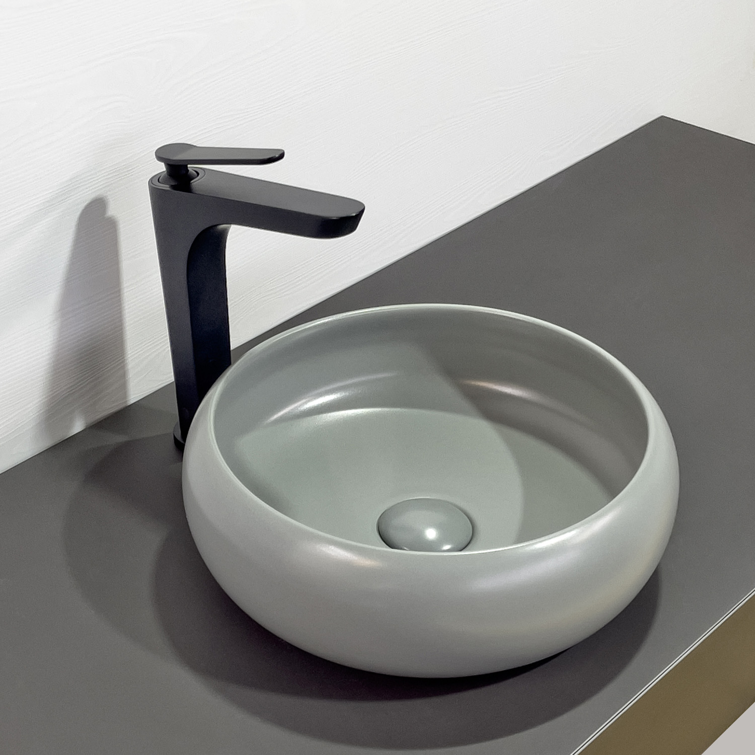 Донный клапан для раковин без перелива с керамическим верхом Comforty DK-01MH светло-серый матовый