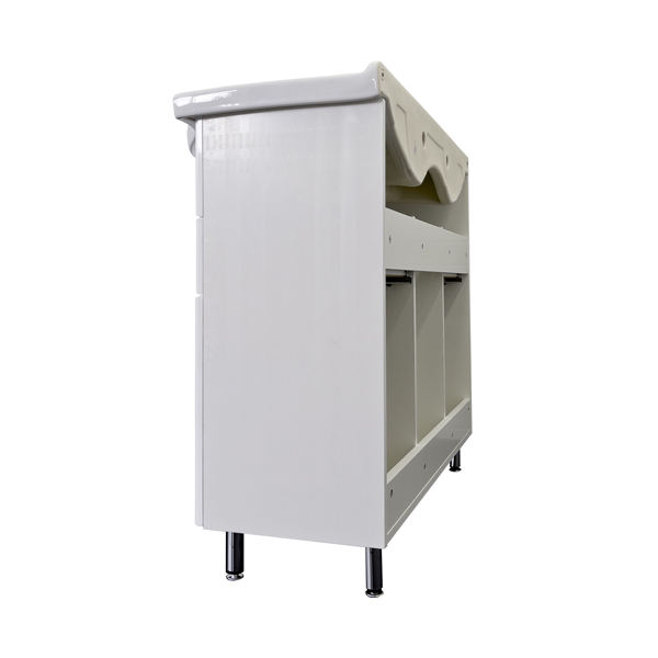Верхняя, нижняя створки и ящик оснащены системой плавного закрывания. Фасады покрыты белой глянцевой эмалью.