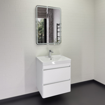 За створкой две горизонтальные полки. Петли у створки снаружи. Зеркало-шкаф универсально - может быть подвешено в правом и левом варианте. Контурная светодиодная подсветка с плотностью светодиодов 120 шт.м. Бесконтактный сенсорный выключатель с функцией диммирования (регулировка яркости от минимального до яркого.