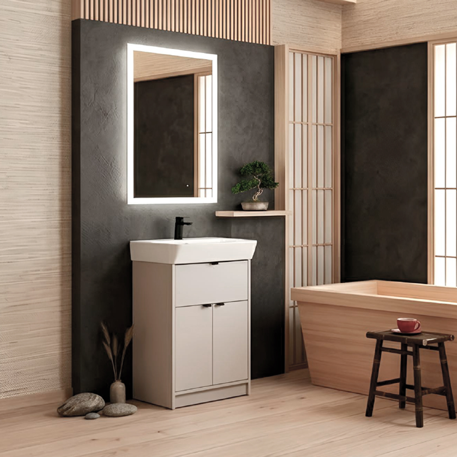 Высококачественное зеркальное полотно с амальгамой на основе серебра. Зеркало оборудовано ореольной и фронтальной светодиодной подсветкой с бесконтактным включателем со встроенной функцией регулировки яркости. Температура подсветки: 6000-6500К холодная. Зеркало выпускается в вариантах с функцией антизапотевания и без.