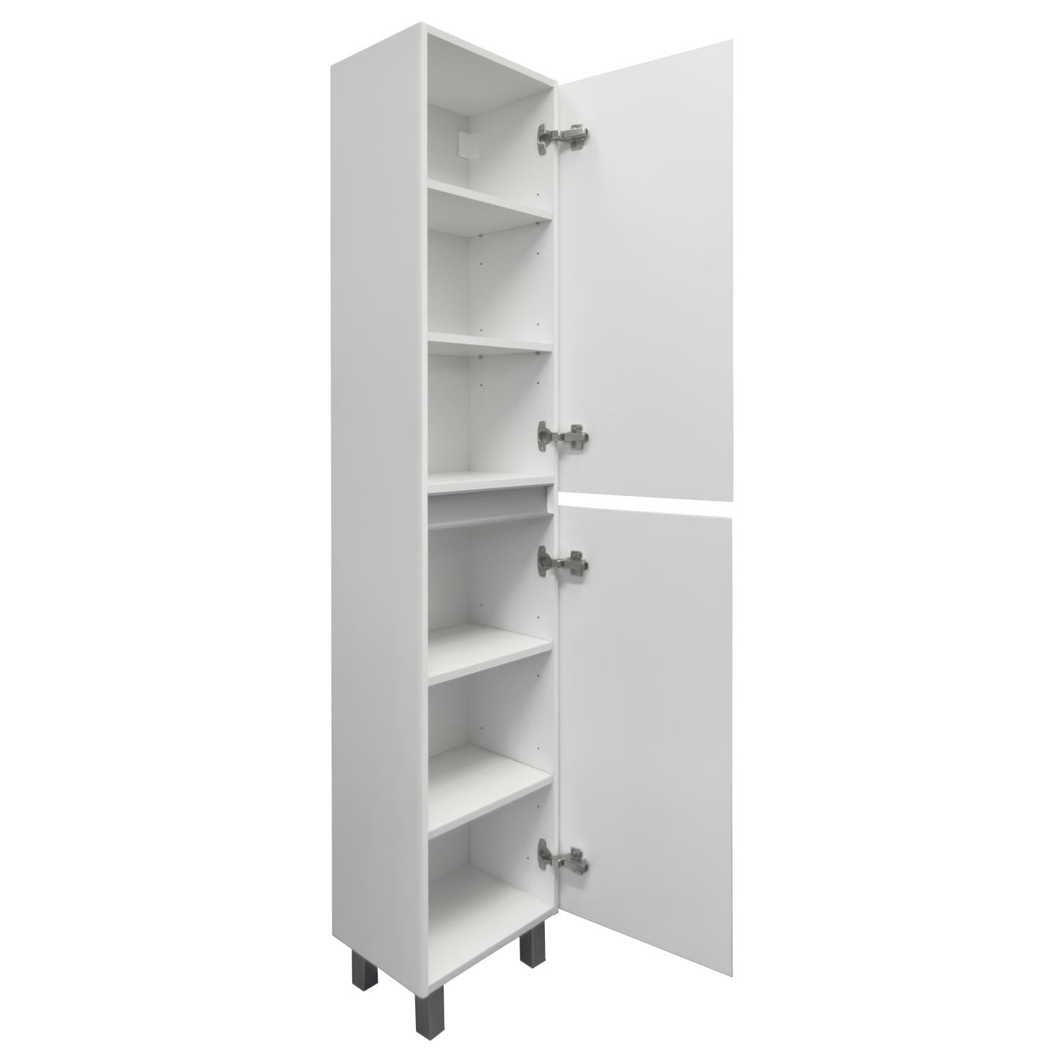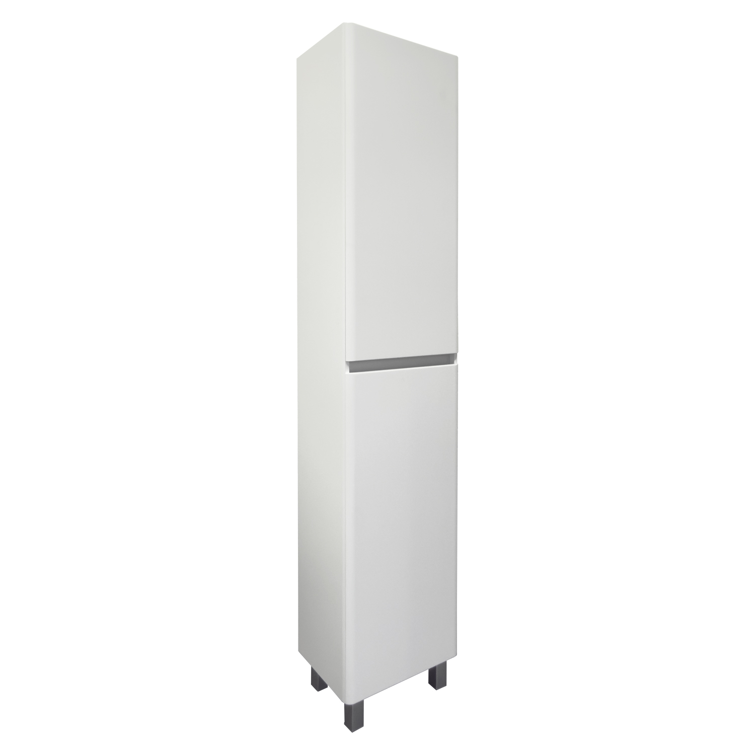 Напольная шкаф-колонна отличное решение для хранения разных предметов необходимых в ванной комнате. Лицевая фурнитура на фасадах отсутствует, для открытия ящиков нужно потянуть край фасада, на котором сделан вырез под естественный хват. Прорези в фасадах декорированы алюминиевым профилем. Петли оборудованы механизмами плавного закрывания. За верхним и нижним фасадом по две регулируемые полки.