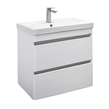 Корпус и фасады тумбы из МДФ окрашены белой матовой эмалью.