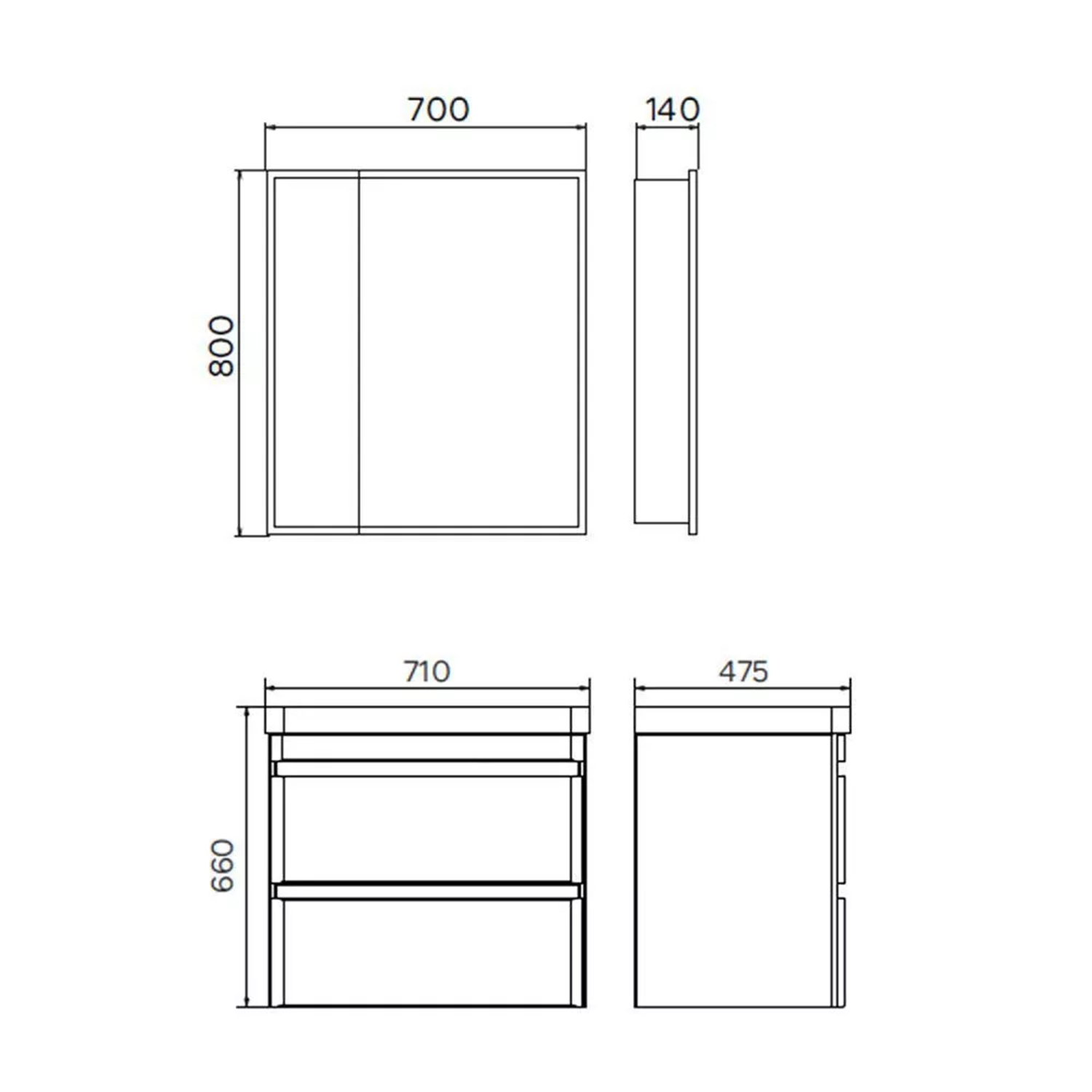 За створкой две горизонтальные полки. Петли у створки снаружи. Зеркало-шкаф универсально - может быть подвешено в правом и левом варианте. Контурная светодиодная подсветка с плотностью светодиодов 120 шт.м. Бесконтактный сенсорный выключатель с функцией диммирования (регулировка яркости от минимального до яркого.