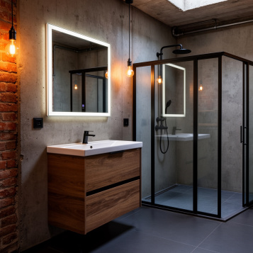 Зеркало оснащено встроенным светодиодным светильником и бесконтактной кнопкой включения подсветки. Функция бесконтактного диммирования - регулирования яркости подсветки. Тип подсветки: фронтальная. Температура внутренней подсветки: 6500К, холодный свет