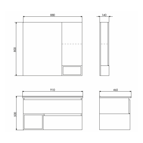 Габариты (ШхВхГ): 880*800*140 мм