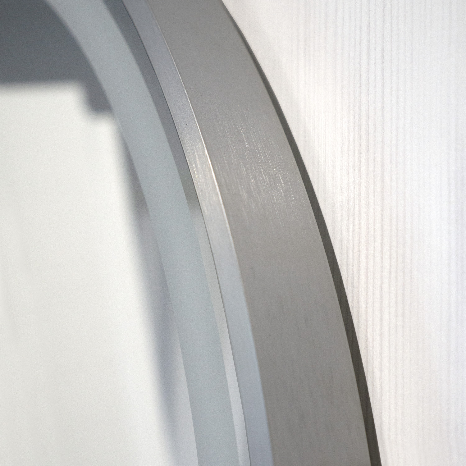Рама зеркала выполнена из брашированного алюминиевого профиля