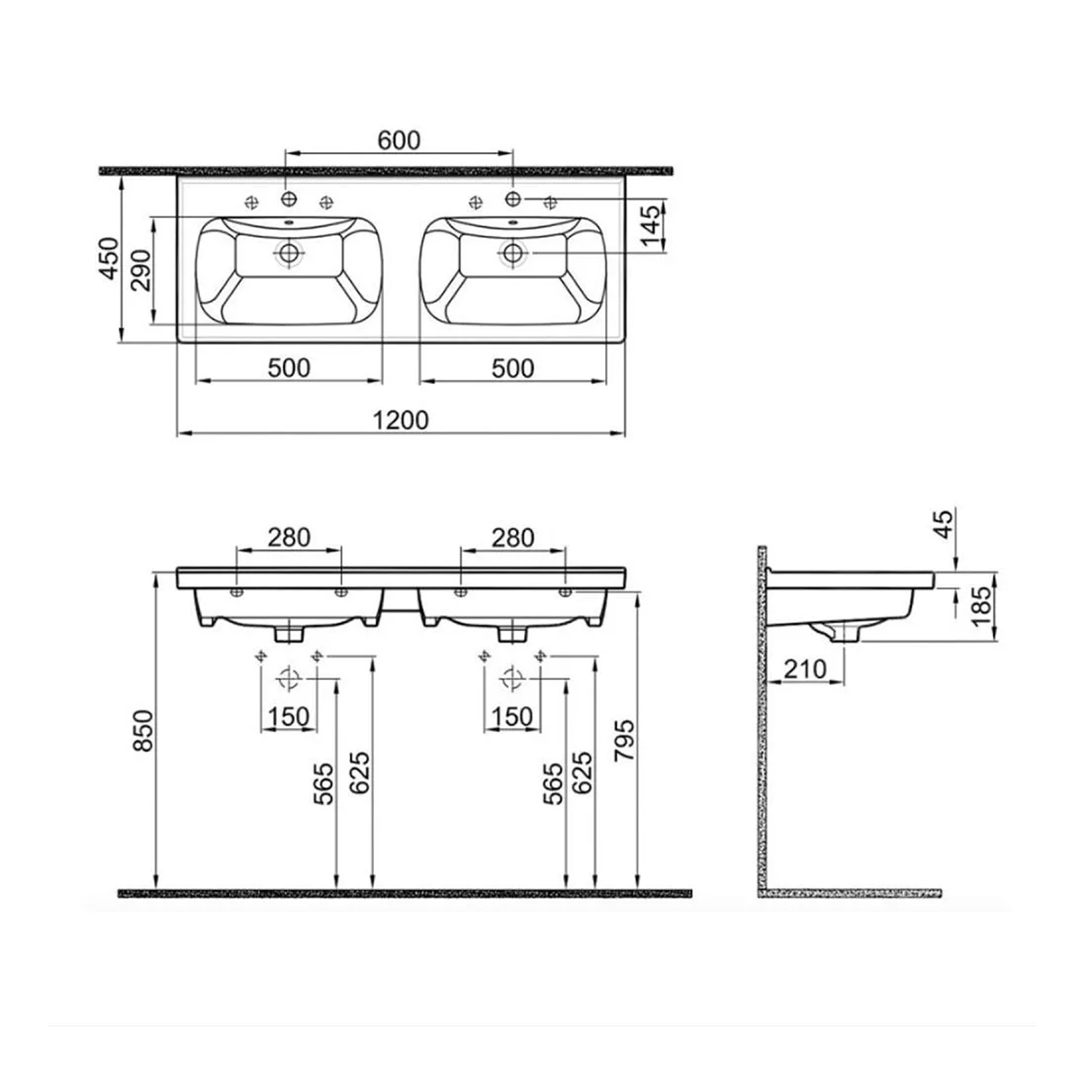 Указанные предельные отклонения в размерах на раковинах варьируются от +/- 25 мм