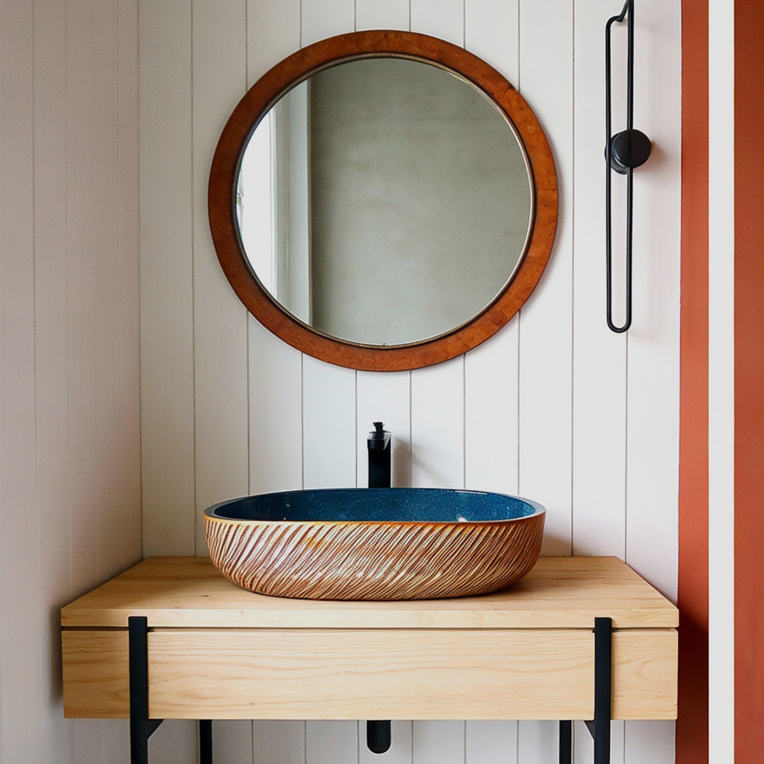 Такой умывальник подойдёт тем, кто хочет добавить в интерьер благородный цветной акцент и подчеркнуть индивидуальный характер ванной комнаты без сложной перепланировки.