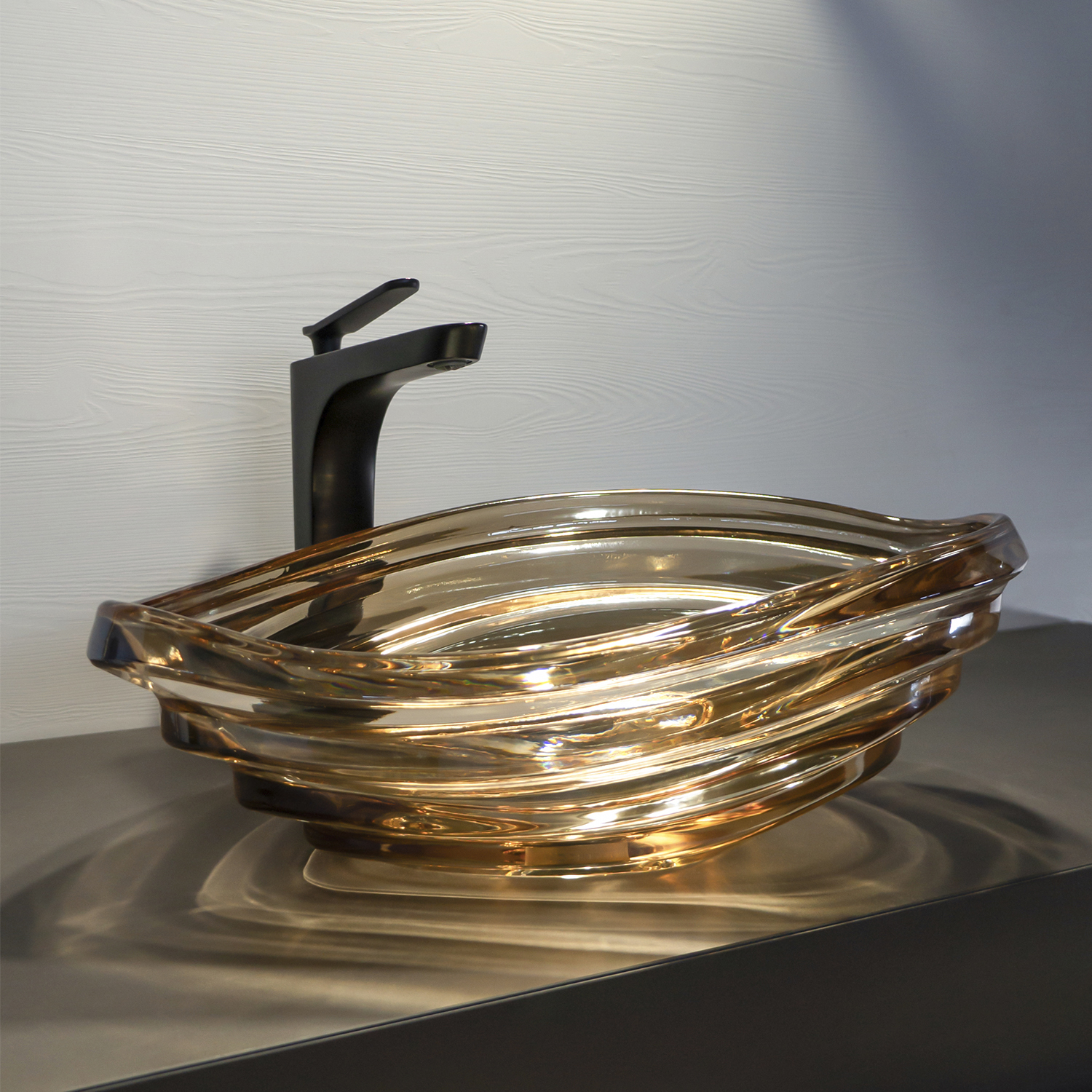 Стеклянная раковина-чаша Comforty CF1G69 в оттенке шампань превращает обычную зону умывальника в эффектный акцент ванной комнаты. Каплевидная форма и плавные волны стекла красиво преломляют свет, создавая игру бликов и ощущение легкости.