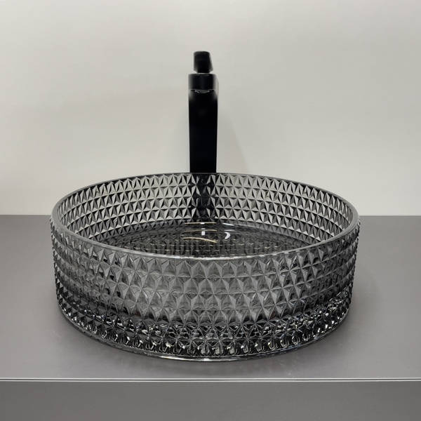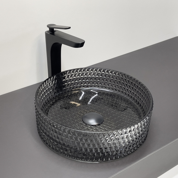 Накладная раковина 36 см Comforty CF21004 стеклянная серый дым