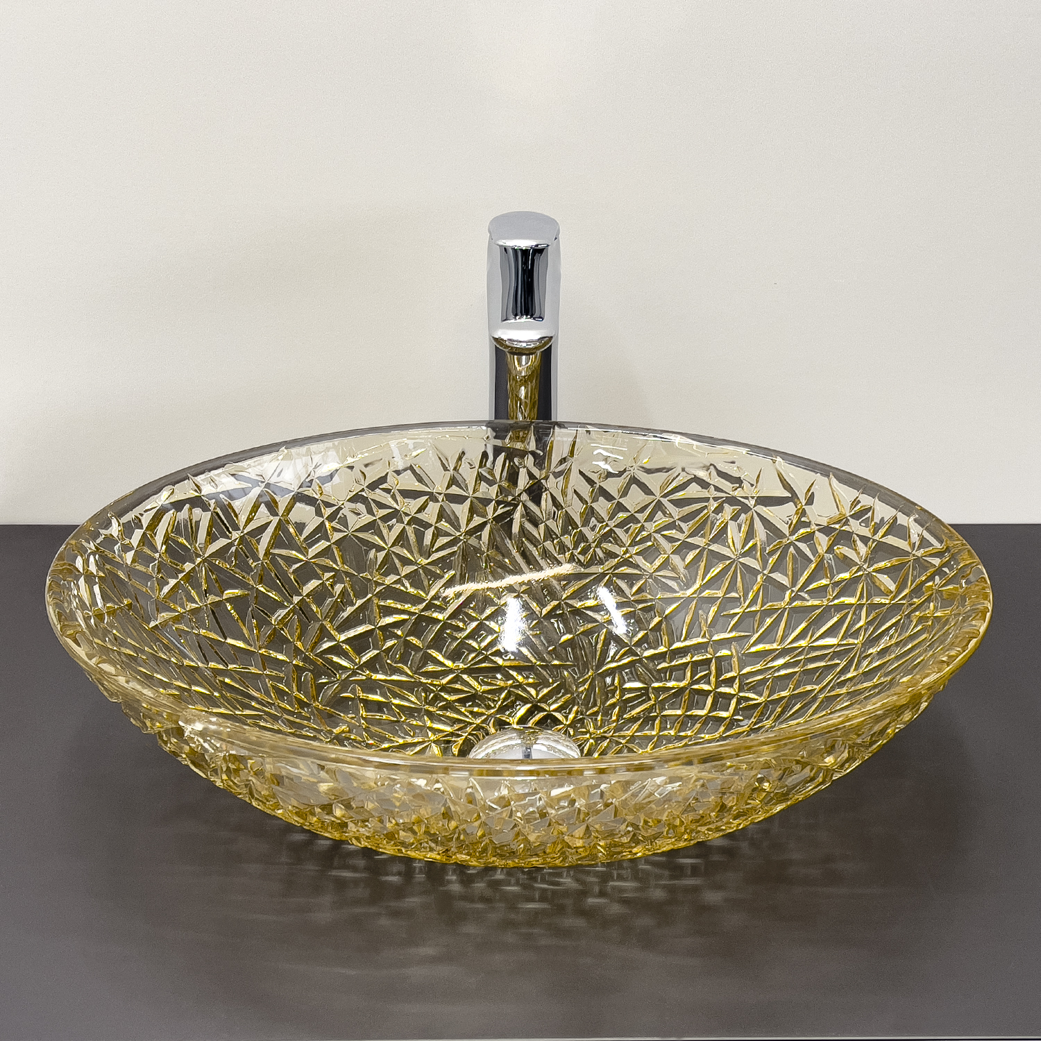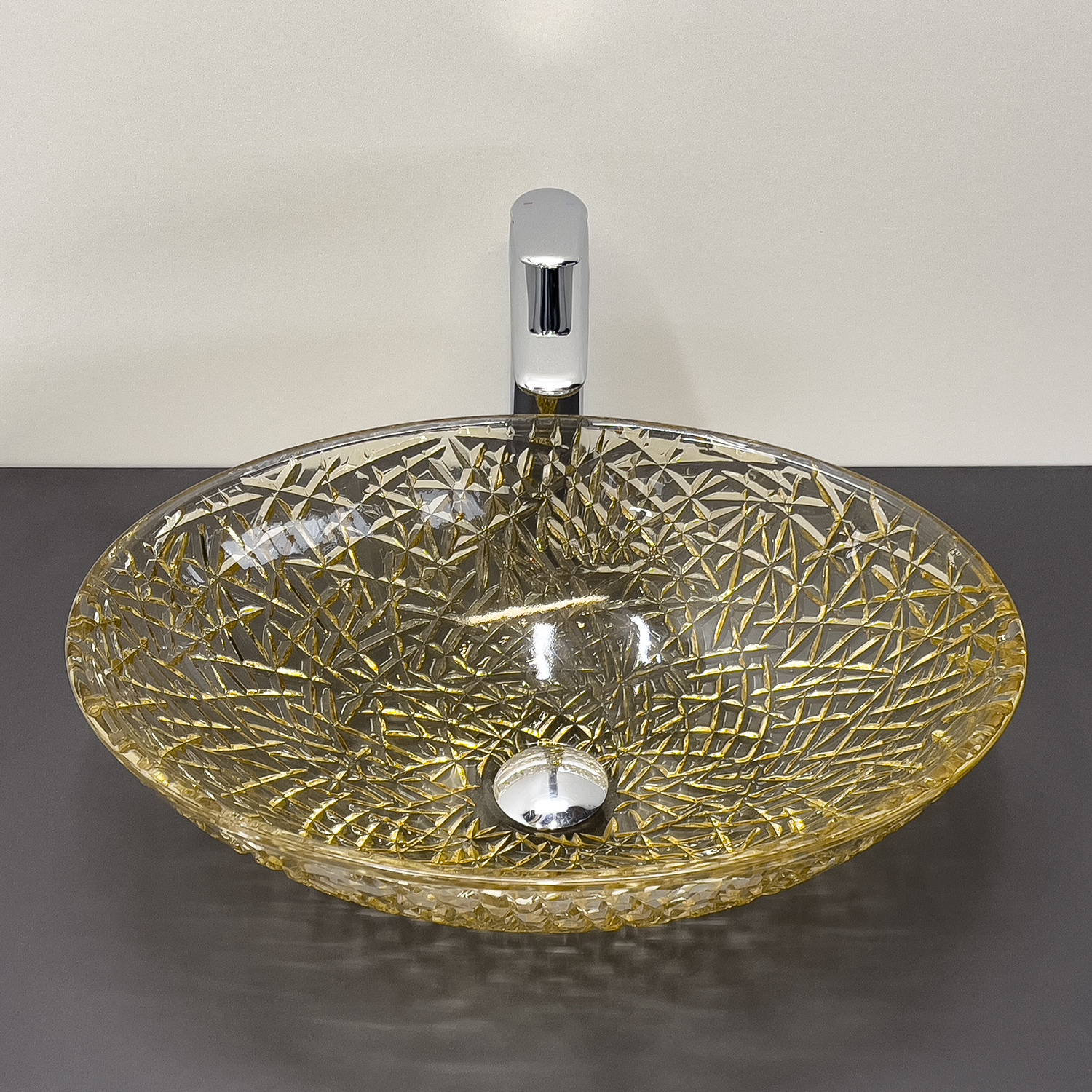 Стеклянная овальная раковина 50 см Comforty CF28004 стекло цвета шампань, для ванной на столешницу