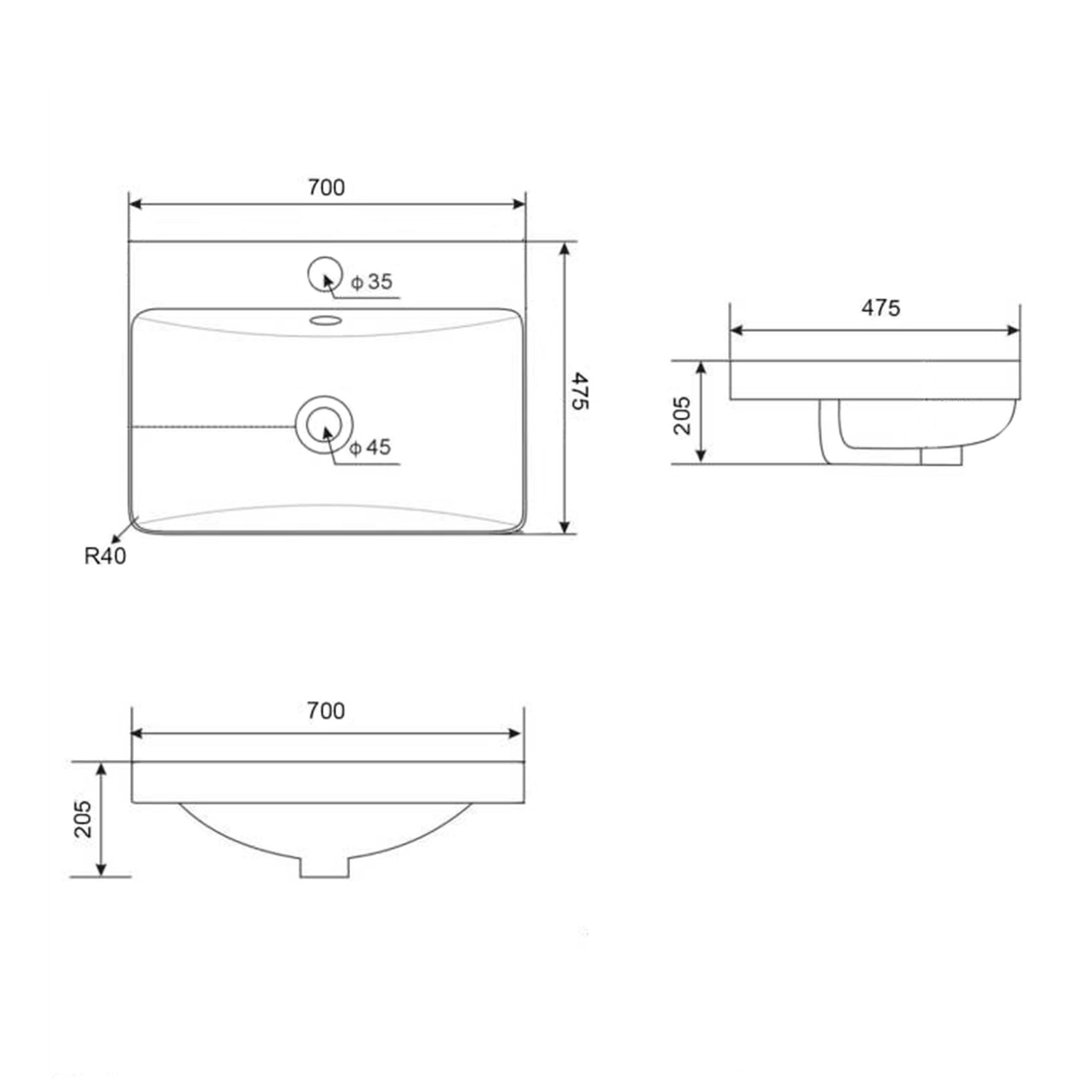 Габаритные размеры ШхВхГ: 700*205*475 мм