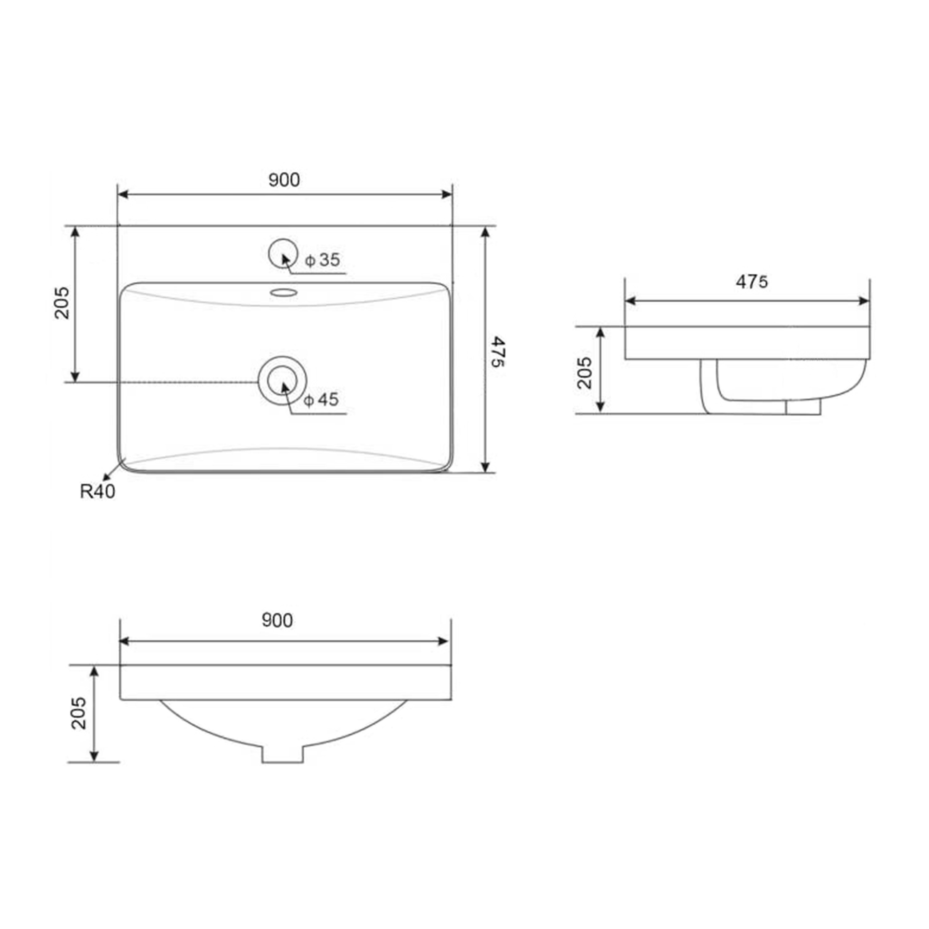 Назначение: накладная мебельная раковина шириной 90 см для установки на тумбу