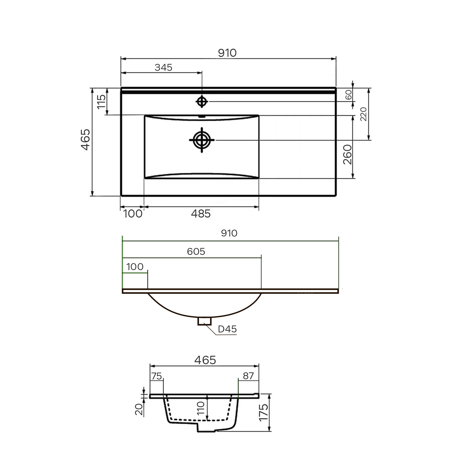 Указанные предельные отклонения в размерах на раковинах варьируются от +/- 25 мм