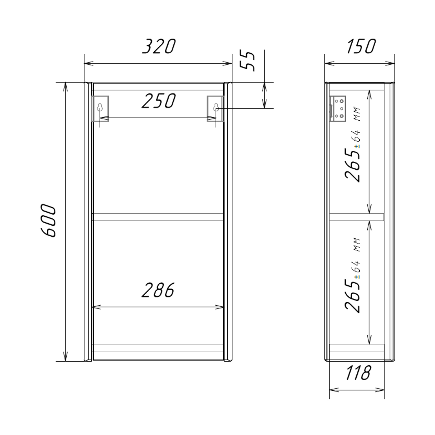 Габариты (ШхВхГ): 320*600*150 мм