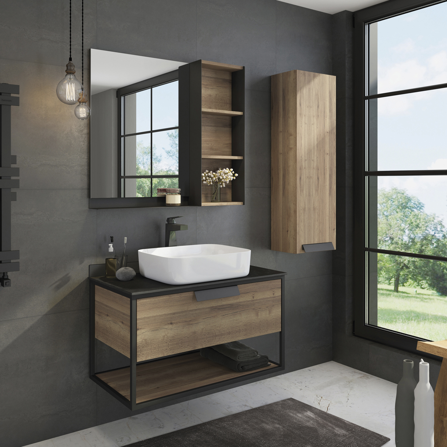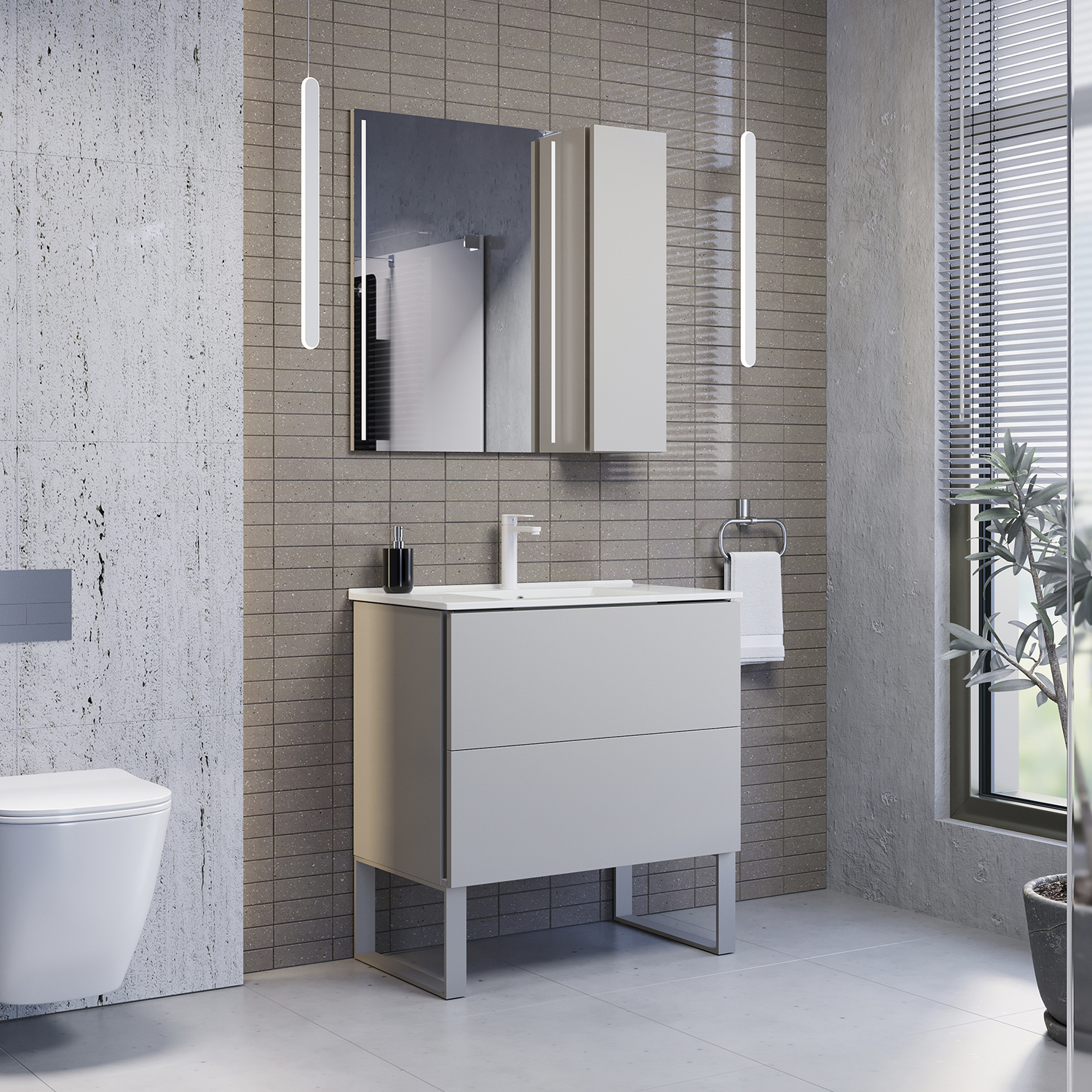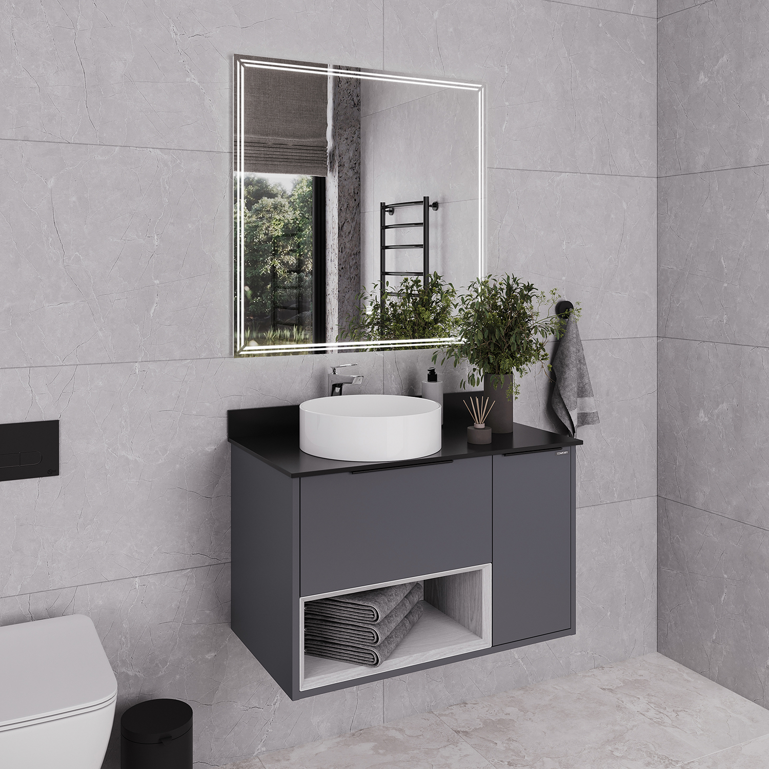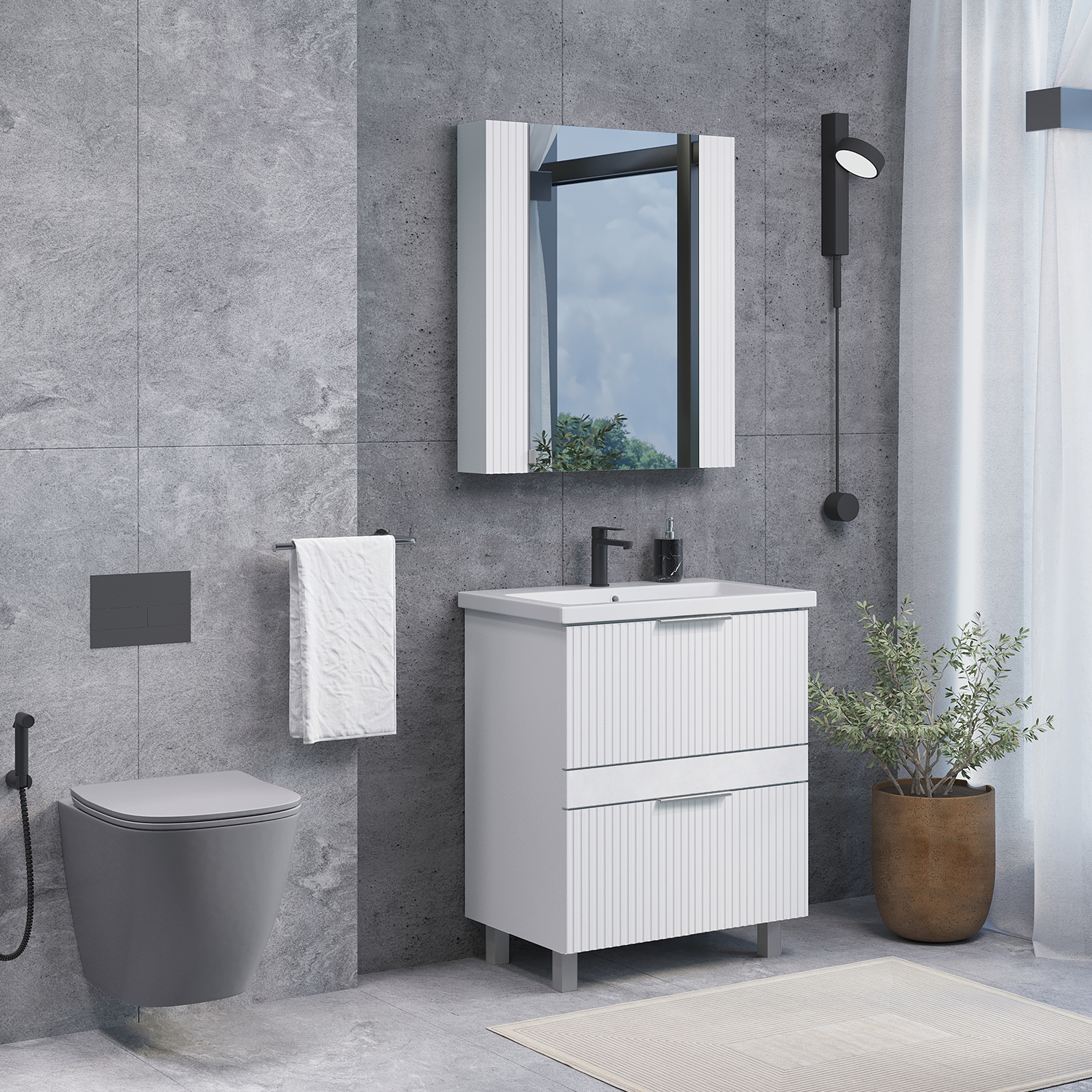 Разнообразие вариантов: напольные и подвесные тумбы, зеркала, шкафы-колонны, комплекты для компактных и просторных ванных комнат.