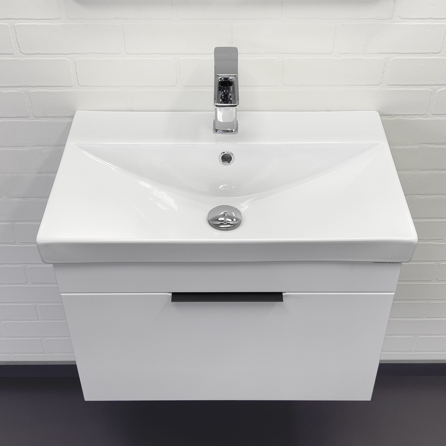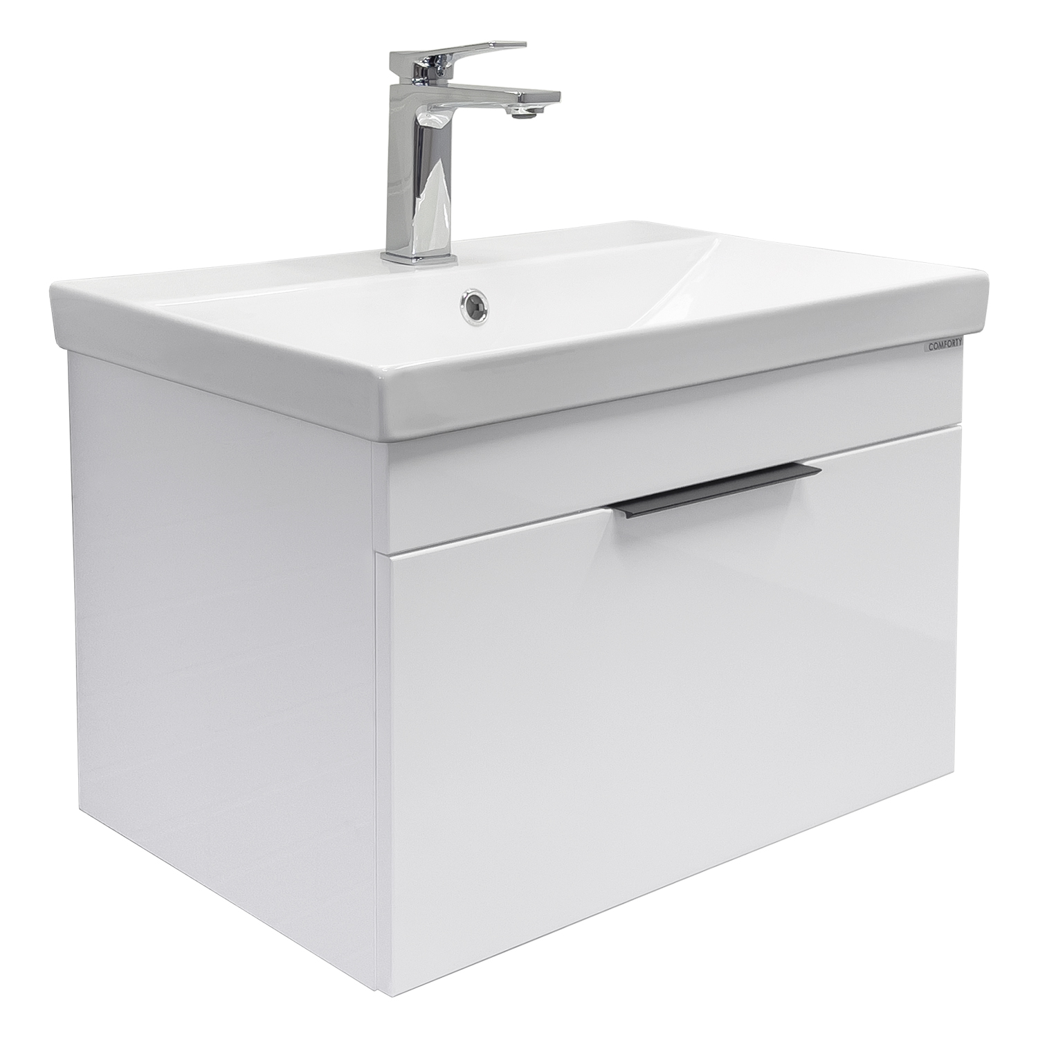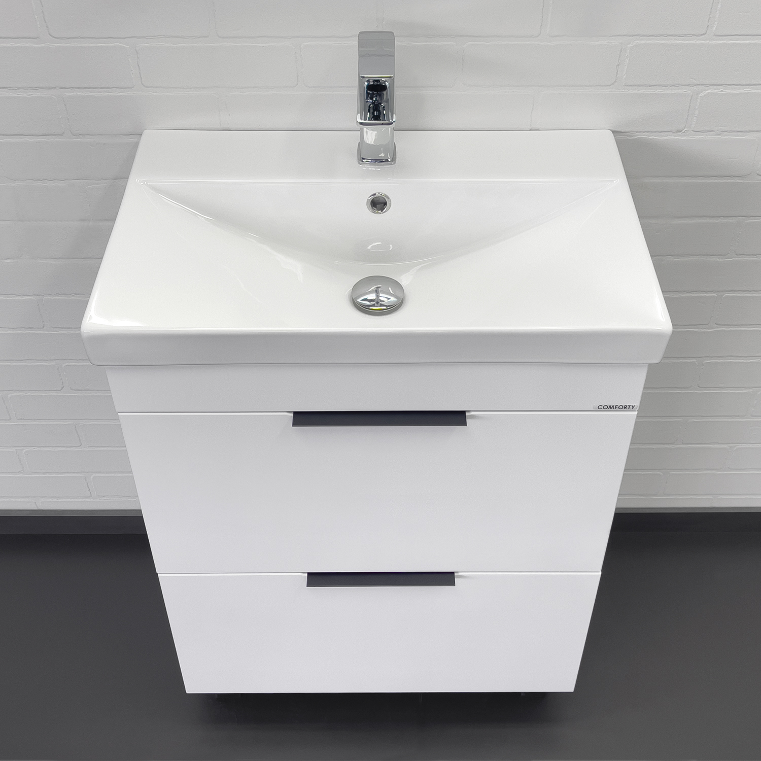 В комплект входит раковина Comforty CF19696BX-60 из идеально белоснежного санфарфора с глубокой чашей и хромированным переливным кольцом.