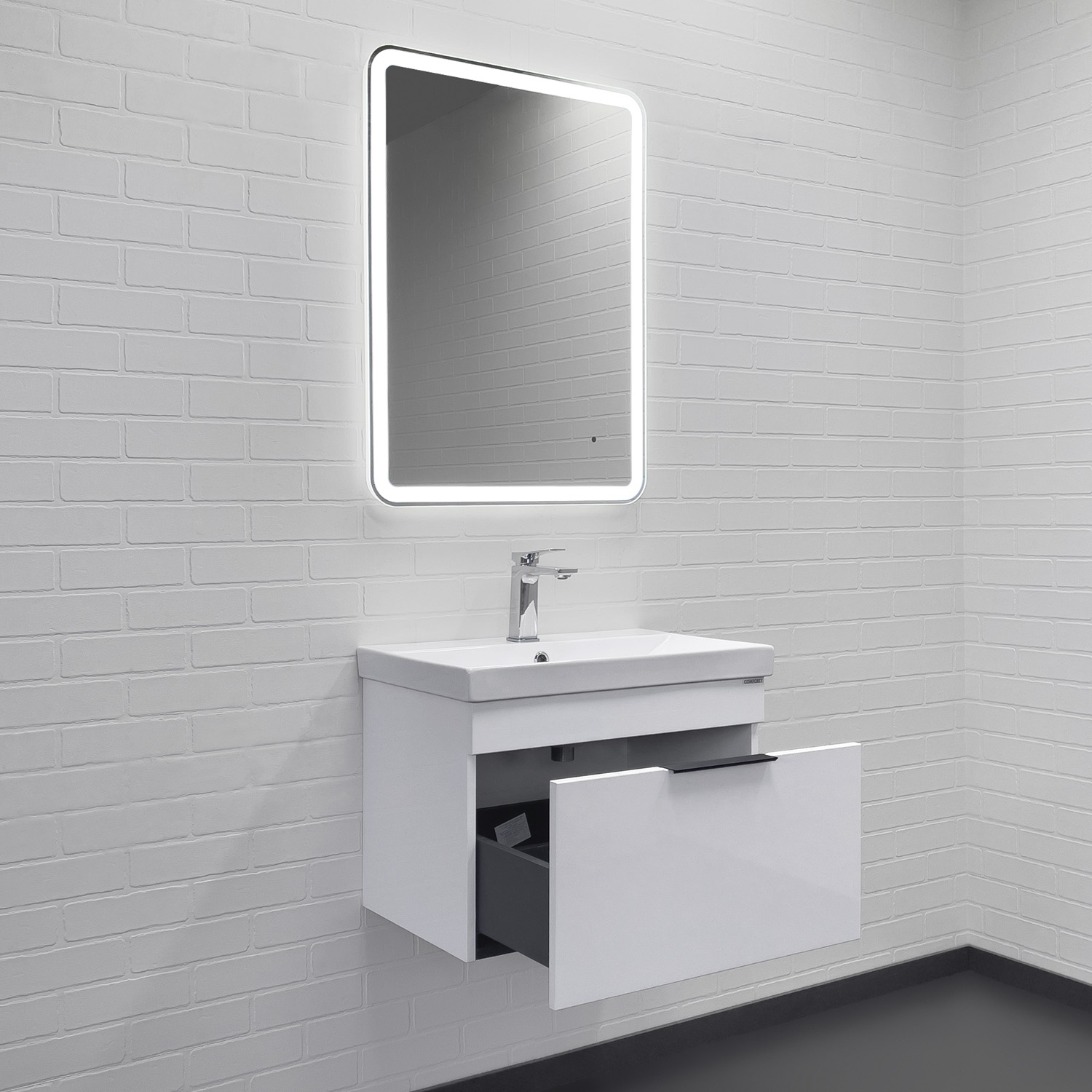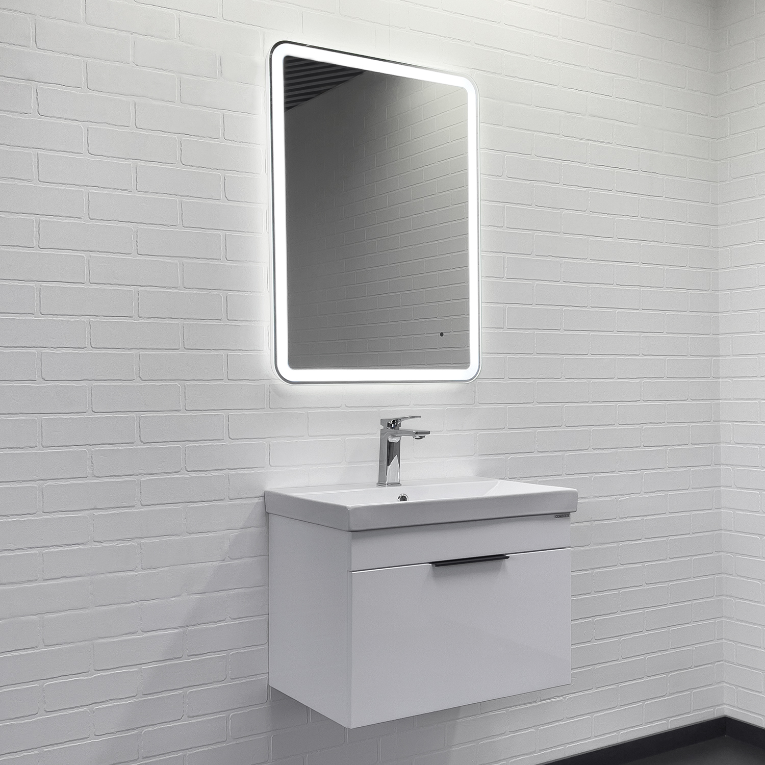 Для подвесной тумбы Kама-60П показано зеркало Лотос-60 с функцией диммирования, возможностью вертикального и горизонтального монтажа и подключением через евровилку.