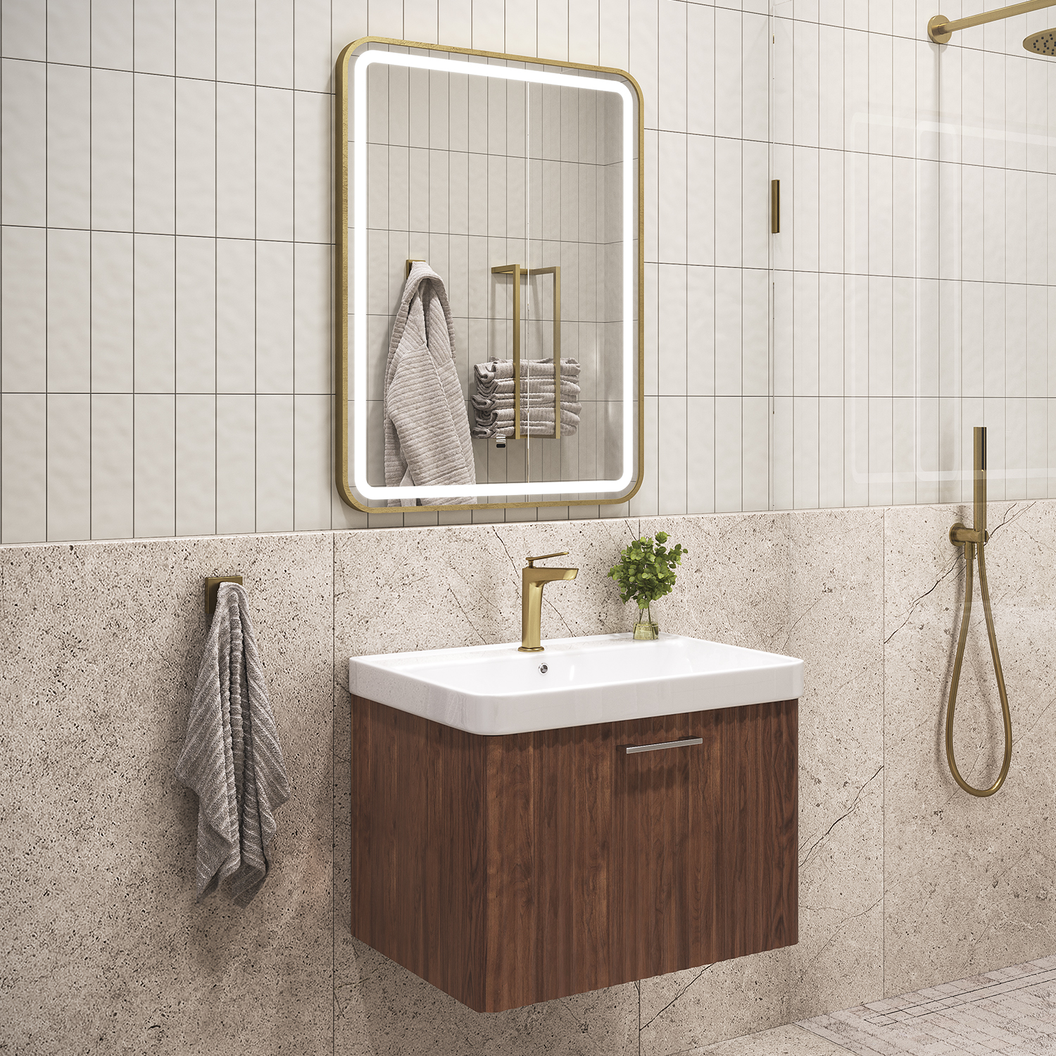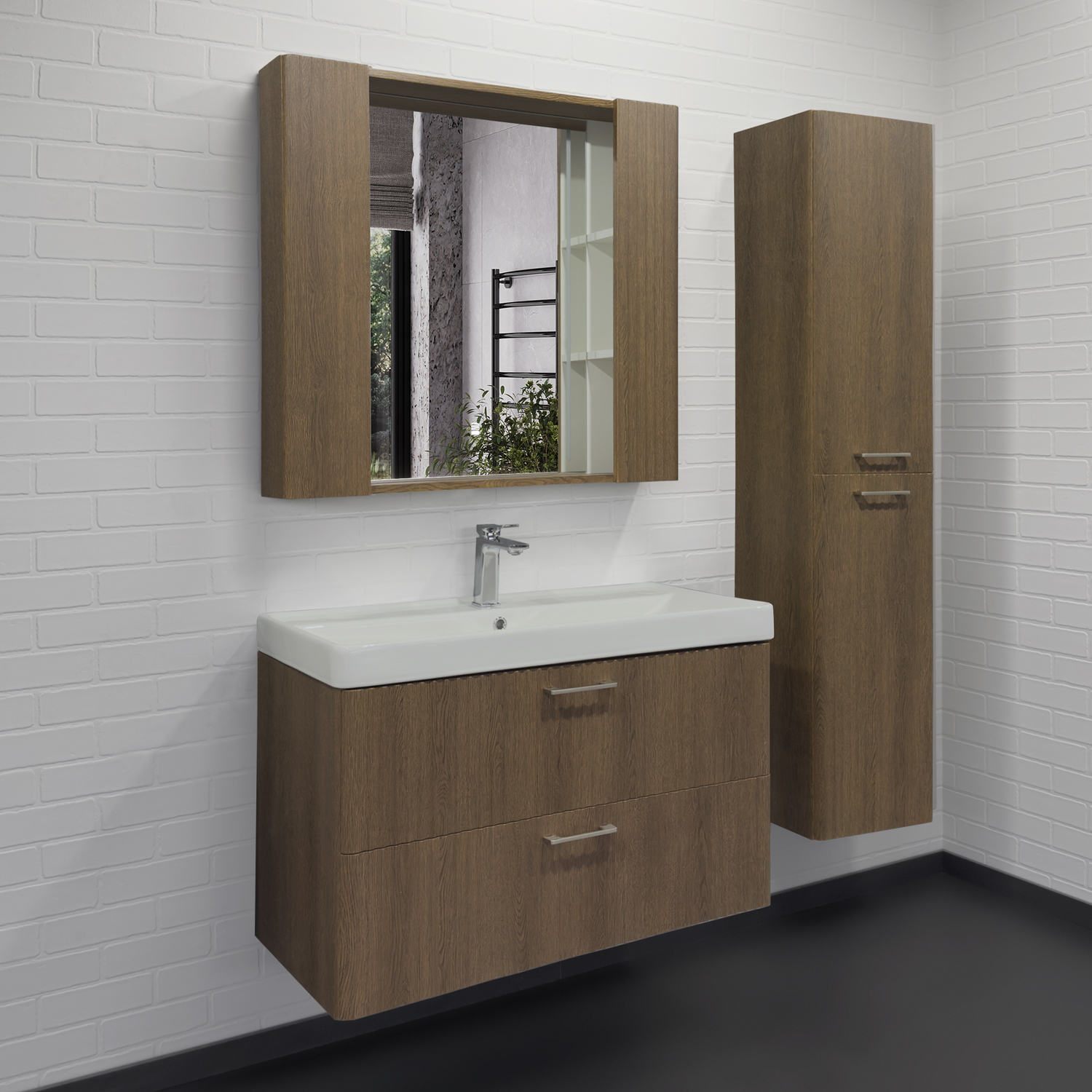 Для тумб предусмотрены новые керамические раковины Comforty с размером 460×610×470 мм для вариантов 60 см и 590×910×475 мм для моделей 90 см.