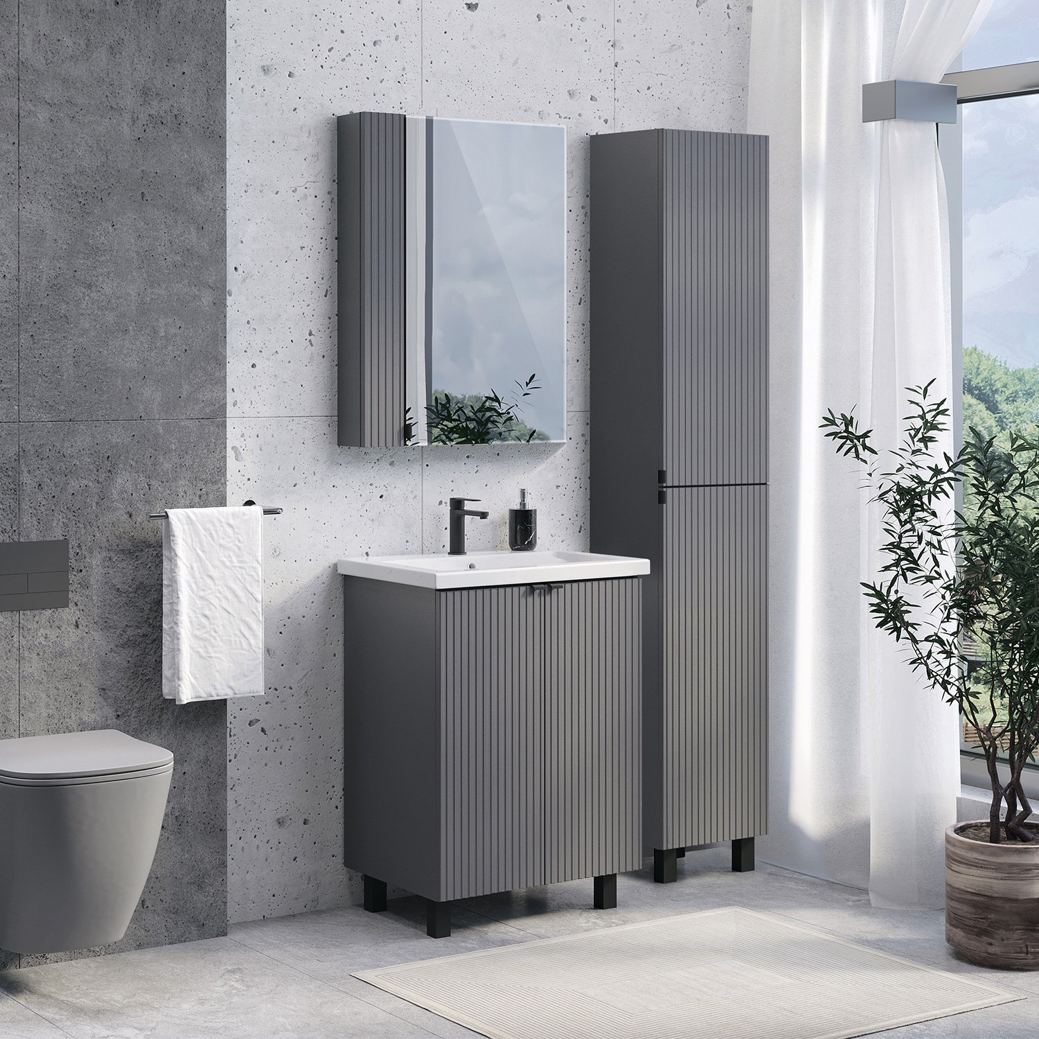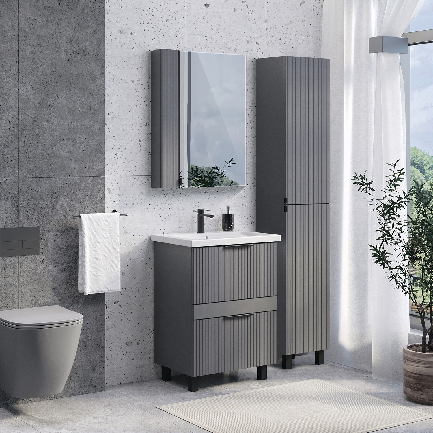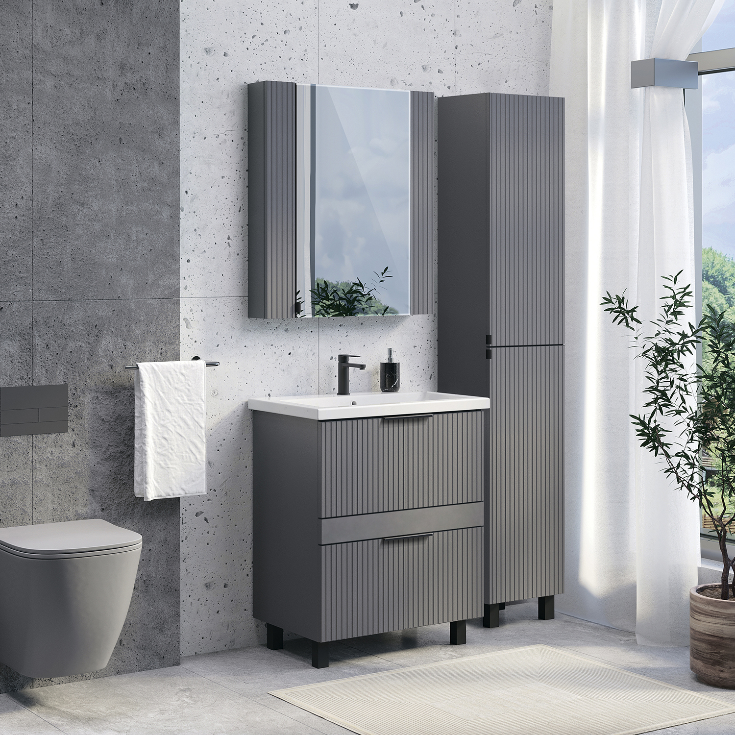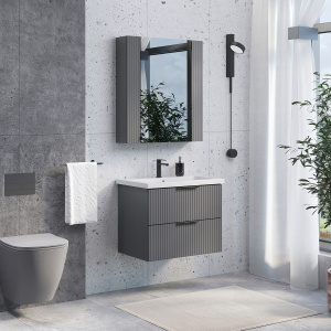 Обновлённая ЛИМА включает тумбы с раковиной (напольные и подвесные), зеркало-шкаф и напольный шкаф-колонну, что закрывает ключевые потребности по хранению и организации пространства. Коллекция предлагается в двух универсальных цветах — антрацит и белый матовый, благодаря чему мебель легко вписывается и в светлые, и в контрастные интерьерные решения.