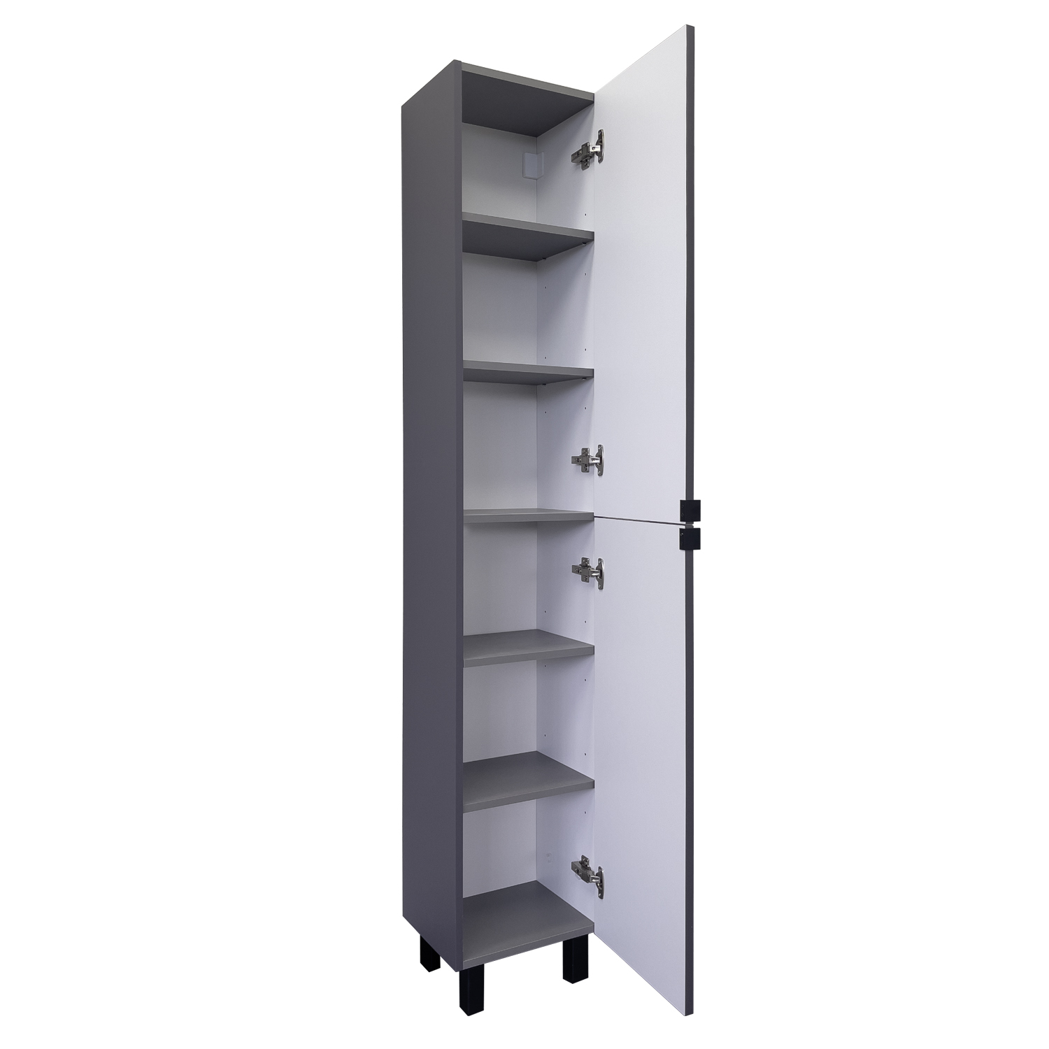 Зеркало-шкаф ЛИМА доступно в размерах 60 и 70 см, имеет одну створку и две регулируемые полки, сочетая функцию хранения и визуальное расширение пространства. Напольная шкаф-колонна ЛИМА‑35H с габаритами 1900×350×300 мм оснащена двумя створками и четырьмя регулируемыми полками, обеспечивая вместительное вертикальное хранение даже в компактных санузлах.